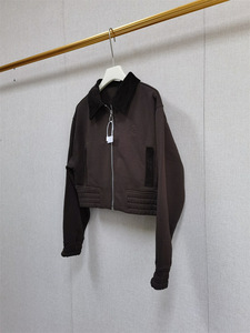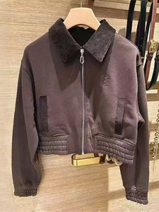 法式小众2025秋复古灯芯绒翻领短款收腰夹克薄绒卫衣外套