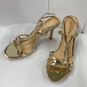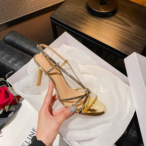 YX气质名媛金色绑带高跟鞋女2025新款一字带细跟罗马凉鞋法式气质