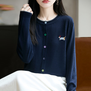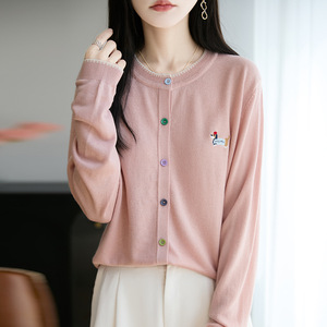 圆领针织开衫女宽松外搭2025年秋季新款洋气时尚百搭毛衣外套上衣