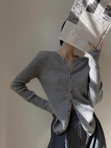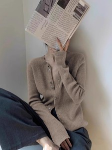 秋薄款修身长袖针织开衫外套上衣小个子短款树莓粉色毛衣女外穿