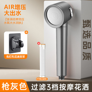 枪灰色【手喷+支架】3档增压净水花洒
