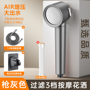枪灰色【手喷+1.5米软管】3档增压净水花洒