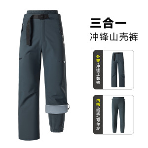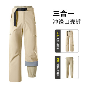 啄木鸟工装冲锋裤男2025新款秋冬三合一伞兵裤徒步登山阔腿运动裤