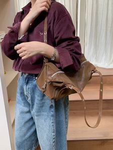2025秋冬新款麂皮绒腋下包铆钉女士单肩包甜酷波士顿手提包
