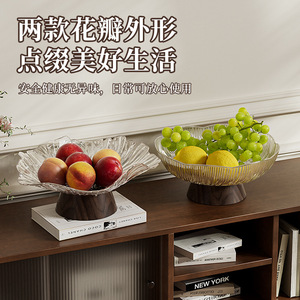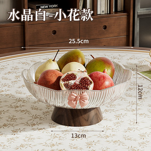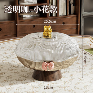 木纹高脚花型果盘家用复古风糖果坚果摆放果盘带盖招财猫跨境批发