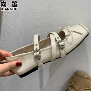 真皮玛丽珍鞋方头芭蕾舞鞋2025秋季新款超软平底不累脚猪鼻子单鞋