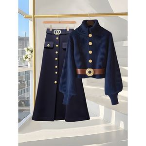 冬装搭配一整套大码胖mm针织衫半身裙气质减龄轻奢两件套装女