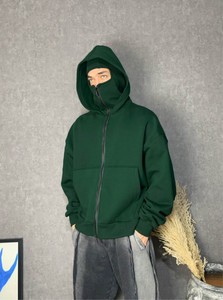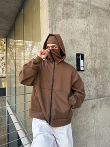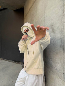 2025欧美跨境秋季独特设计双层蒙面连帽拉链宽松潮流男士纯色卫衣