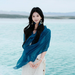 蓝色青海湖废土风棉麻围巾女薄款西北旅游文艺丝巾披肩纱巾民族风