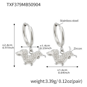 TXF379-钢色小狗锆石耳环