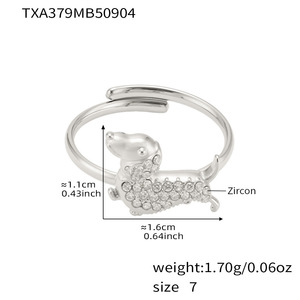 TXA379-钢色小狗锆石戒指7号