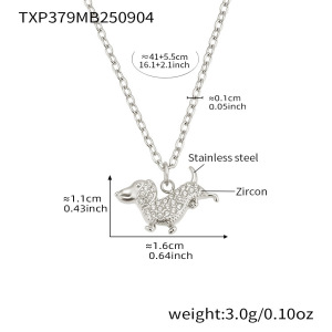 TXP379-钢色小狗锆石项链40+5cm