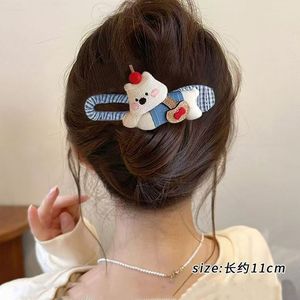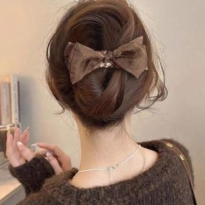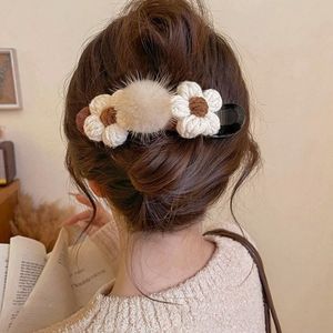 毛绒针织花朵鸭嘴夹女2025年秋冬新款后脑勺盘发一字夹不硌头抓夹