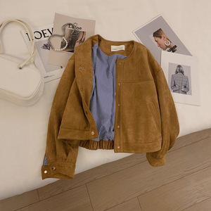 鹿皮绒短外套女士韩系洋气时尚小个子夹克上衣秋季新款高级感百搭