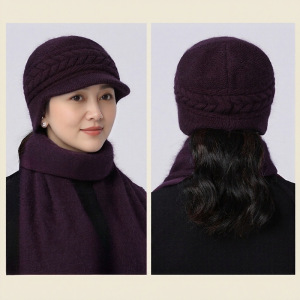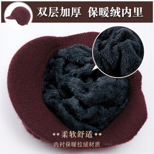 新款冬季帽子中老年人加绒加厚帽子围巾套保暖防寒风针织毛线帽女