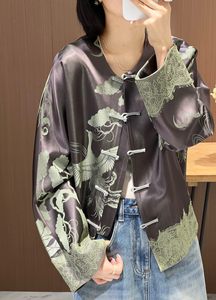 新中式真丝蕾丝盘扣外套复古盘扣圆领上衣