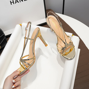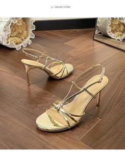 WO惠州市新款漆皮细高跟凉鞋金色欧美范露趾百搭气质时尚绝美圆头