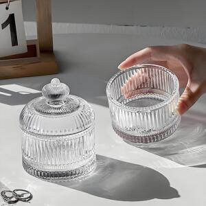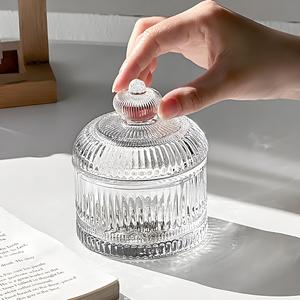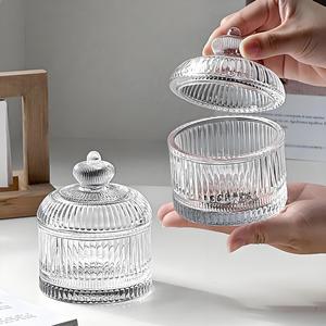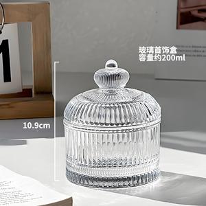 ins风透明玻璃储物罐带盖防尘皇冠收纳首饰盒零食干果浮雕糖果罐