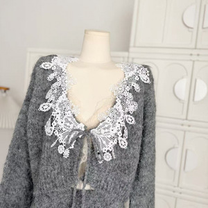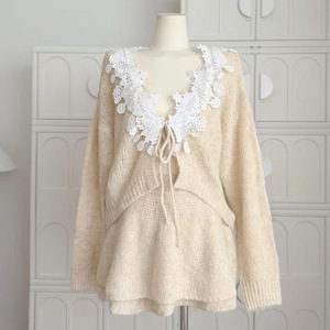 塞纳2025秋季新款套装温柔V领花边系绳上衣+短裙套装加安全短裤女