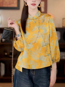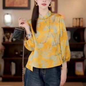2025秋季新款洋气设计感显瘦立领小衫国风新中式百搭印花长袖上衣
