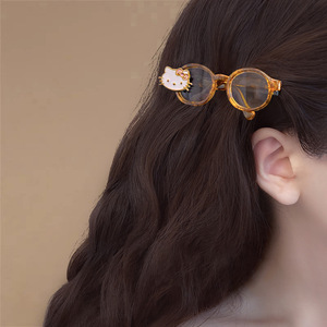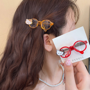 卡通KT猫发夹女创意眼镜造型刘海夹发卡鸭嘴夹前额碎发夹子发饰品
