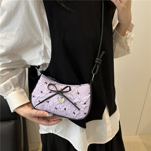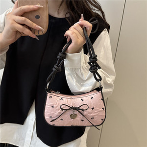 韩系甜美泡泡纱蝴蝶结腋下包包女高级感黑粉撞色单肩斜挎包通勤包