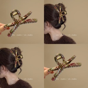 高级感复古学院风格纹抓夹女高级感盘发鲨鱼夹气质发量多发卡头饰