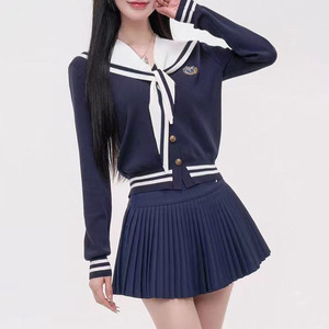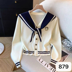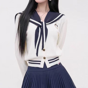 学院风撞色海军领刺绣徽章长袖针织开衫女装减龄百搭上衣毛织衫