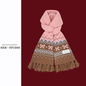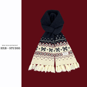 费尔岛提花流苏针织围巾女秋冬季保暖韩版撞色高级感毛线围脖情侣