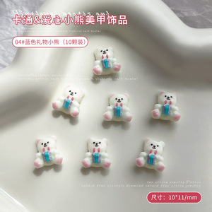 爱心腮红小熊卡通美甲饰品立体可爱嘟嘟熊diy穿戴指甲树脂钻配件