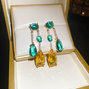 法式宫廷风银针锆石长方形耳环精致轻奢高级感耳钉时尚夸张耳饰女