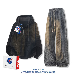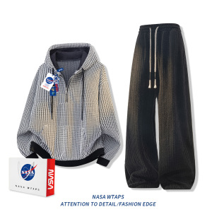 NASA ABOUT雪尼尔小香风条纹休闲裤男秋冬季oversize宽松百搭裤子