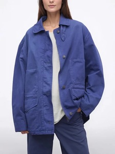 row风新品水洗色泽质感牛仔长袖翻领夹克外套女纯棉工装外套
