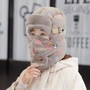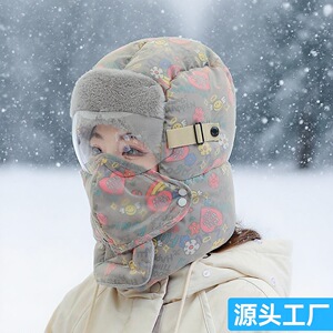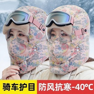 冬季帽子女加绒加厚防风面罩保暖神器电动车骑行男头套棉帽雷锋帽