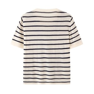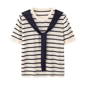 2025夏新时尚减龄百搭海军披肩条纹圆领短袖针织衫3G5131961