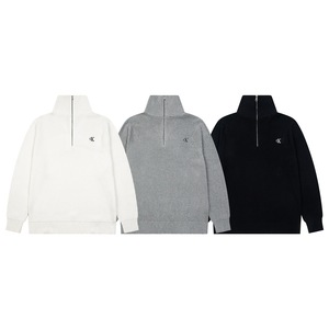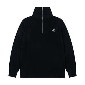 CK爆款 Jeans25ss 秋冬三色男女同款简约刺绣立领半拉链针织套头