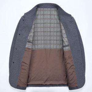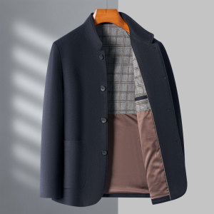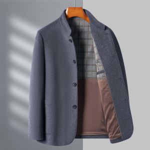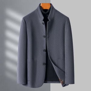 扣子款爸爸高端羊绒夹克男中年立领秋冬季中山装羊毛商务毛呢外套