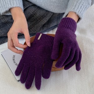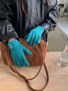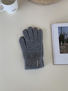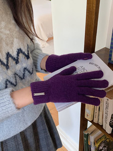 2025秋冬新款纯色含羊毛保暖手套男女针织分指可触屏漏指手套骑车