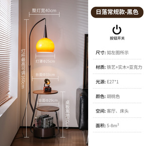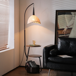 落地灯客厅沙发中古风卧室床头柜一体茶几置物架手机无线充电摆件