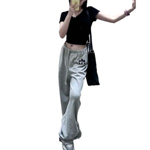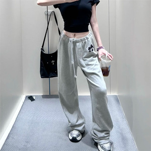 十字架植绒运动长裤女春夏新款设计感美式休闲洋气设计感直筒裤潮