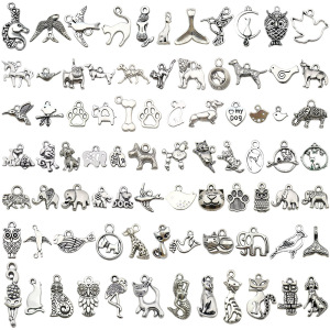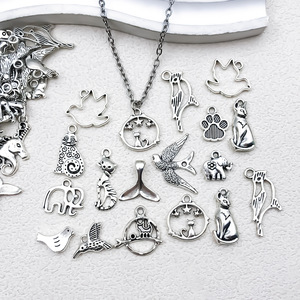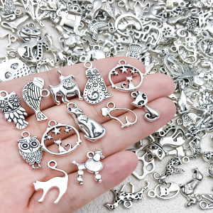 跨境随机古银合金动物猫咪猫头鹰吊坠挂件diy手链项链饰品配件