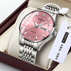 双日历男士手表夜光防水薄简约外贸现货代发夜光防水时尚商务简约