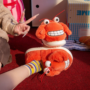 可爱螃蟹棉拖鞋女款包跟2025新款室内家居防滑毛拖鞋冬季情侣棉鞋