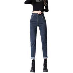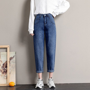 哈伦牛仔裤女高腰宽松显瘦蓝灰九分2025秋冬季弹力直筒老爹女裤子