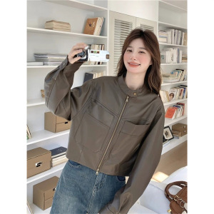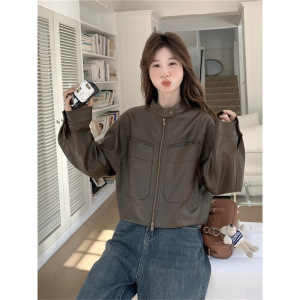 皮韩版衣美拉德多巴胺显瘦外套春秋新款夹克复古百搭女款PU皮夹克
