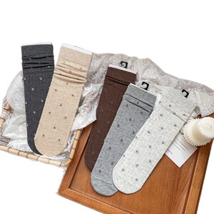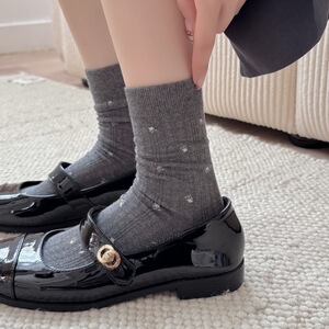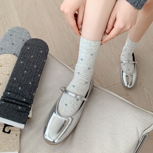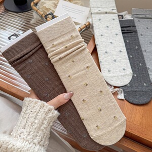 无骨小碎花纯棉中筒袜子女秋冬季日系灰色堆堆袜休闲百搭ins风潮