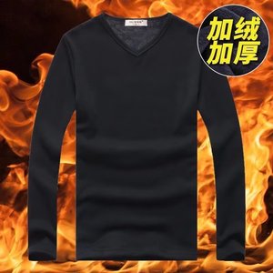 2025新款V领保暖内衣男士秋衣打底衫冬季圆领长袖加绒加厚男t恤
