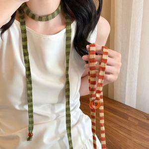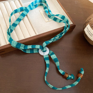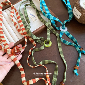 针织绳编织树脂几何圆形吊坠项链复古民族风项饰小众设计感毛衣链