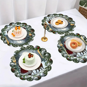 跨境爆款4件装一幅圣诞老人与驯鹿餐垫套装。画面中心是圣诞老人