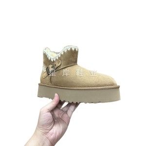 河南桑坡村新款雪地靴女 奶泡V口侧扣短靴子